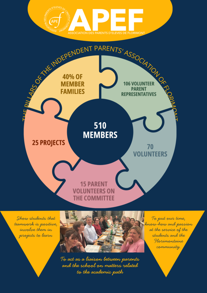 The APEF works on a voluntary basis for all the members of the office, the parent class delegates and the parents of pupils likely to bring their occasional or regular assistance to one or other of the activities of the APEF.